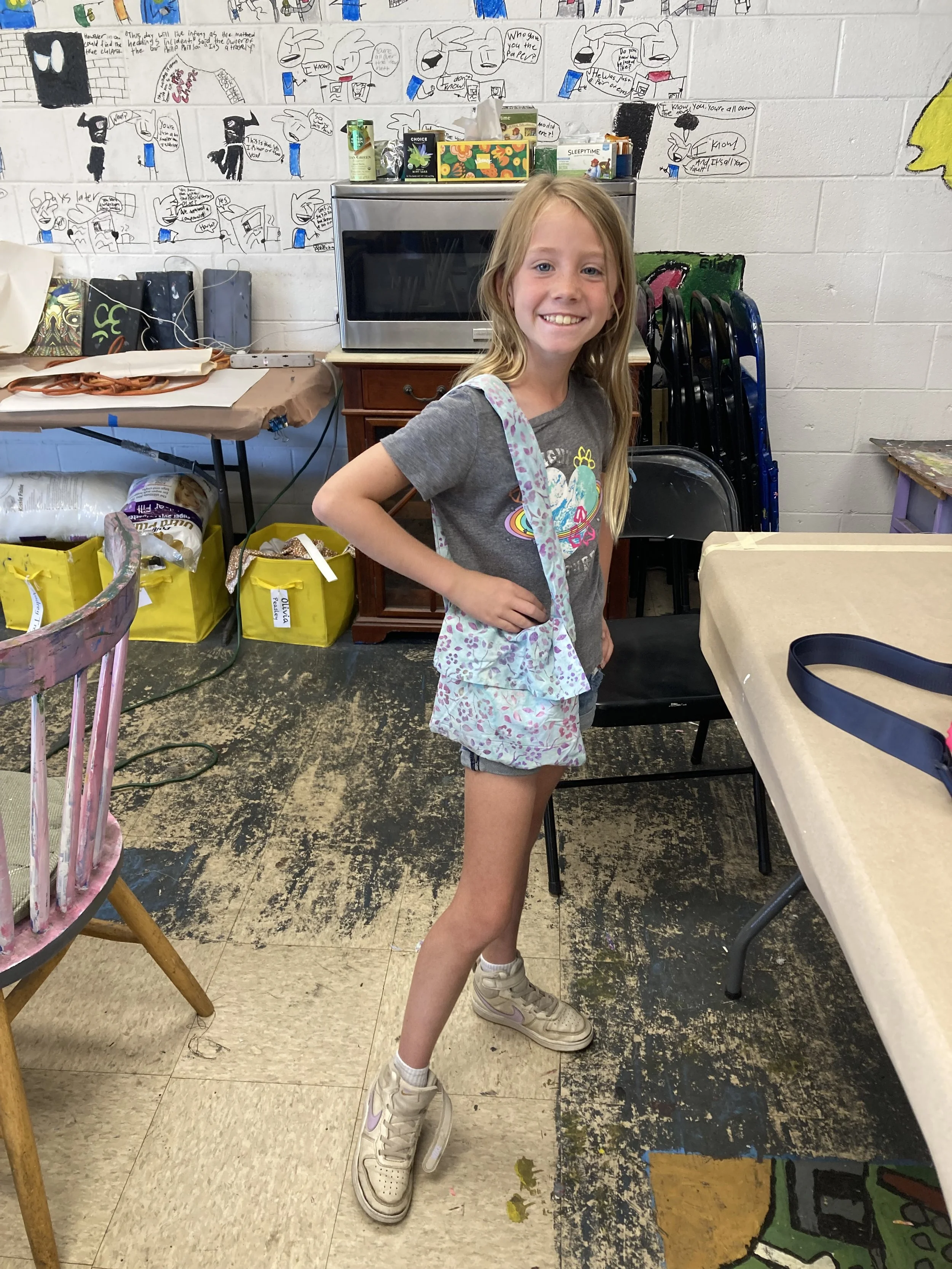The kids are required to sketch out an idea of the item they would like to create, and they have one week to complete it, whether it be a garment for themselves or a bag or a stuffed animal. The kids work very hard to get it all done while enjoying funny conversations and making new friends.