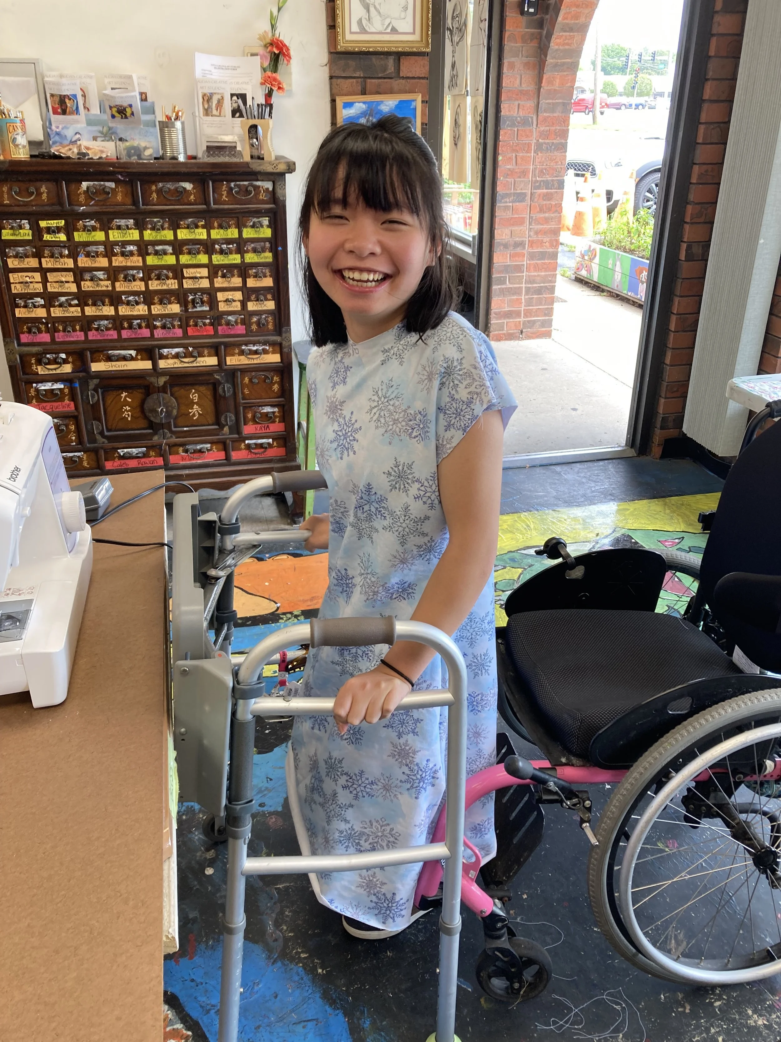 We provide fabrics for the students that have been donated to the studio. The kids are most welcome to use any of these fabrics if they like them. There are also a few sewing machines and a large sewing kit for kids to use in the event they forget their kits.
