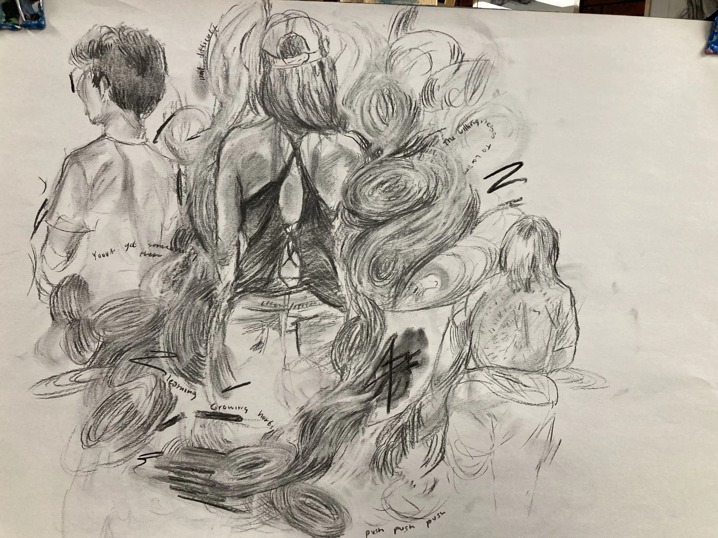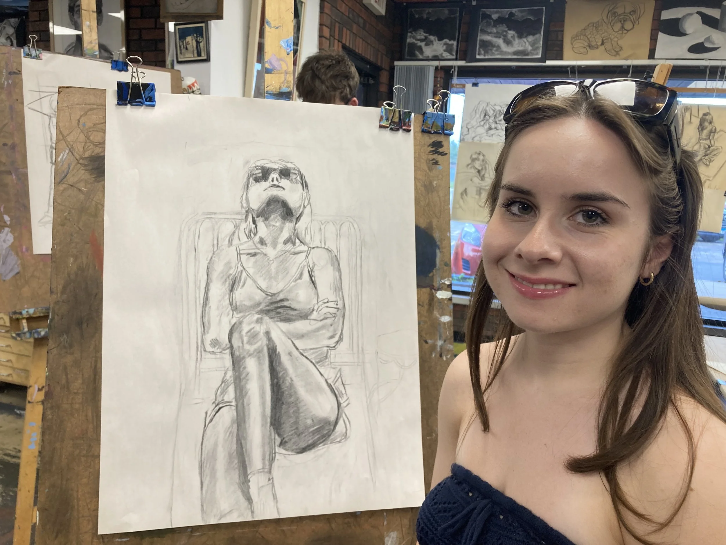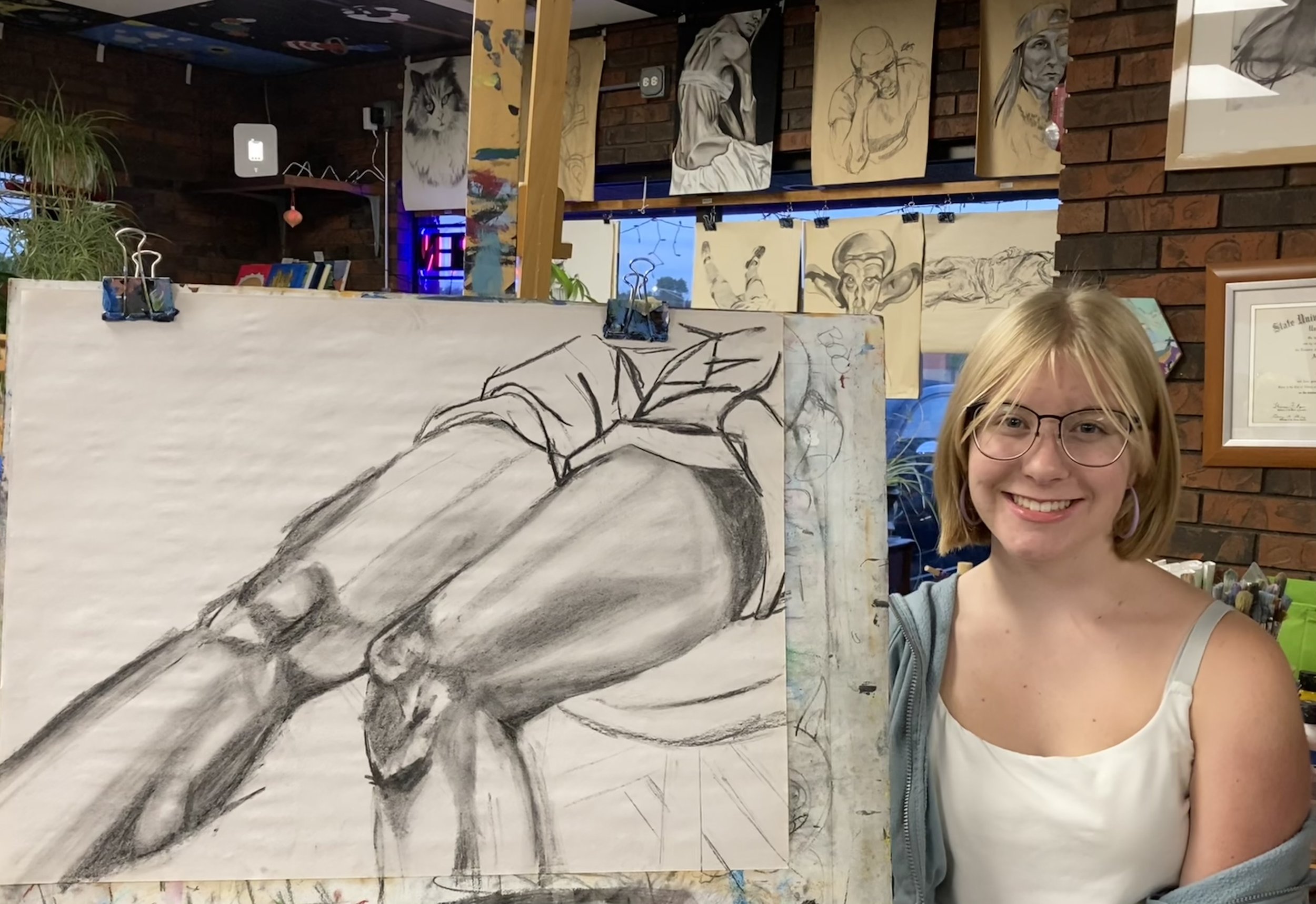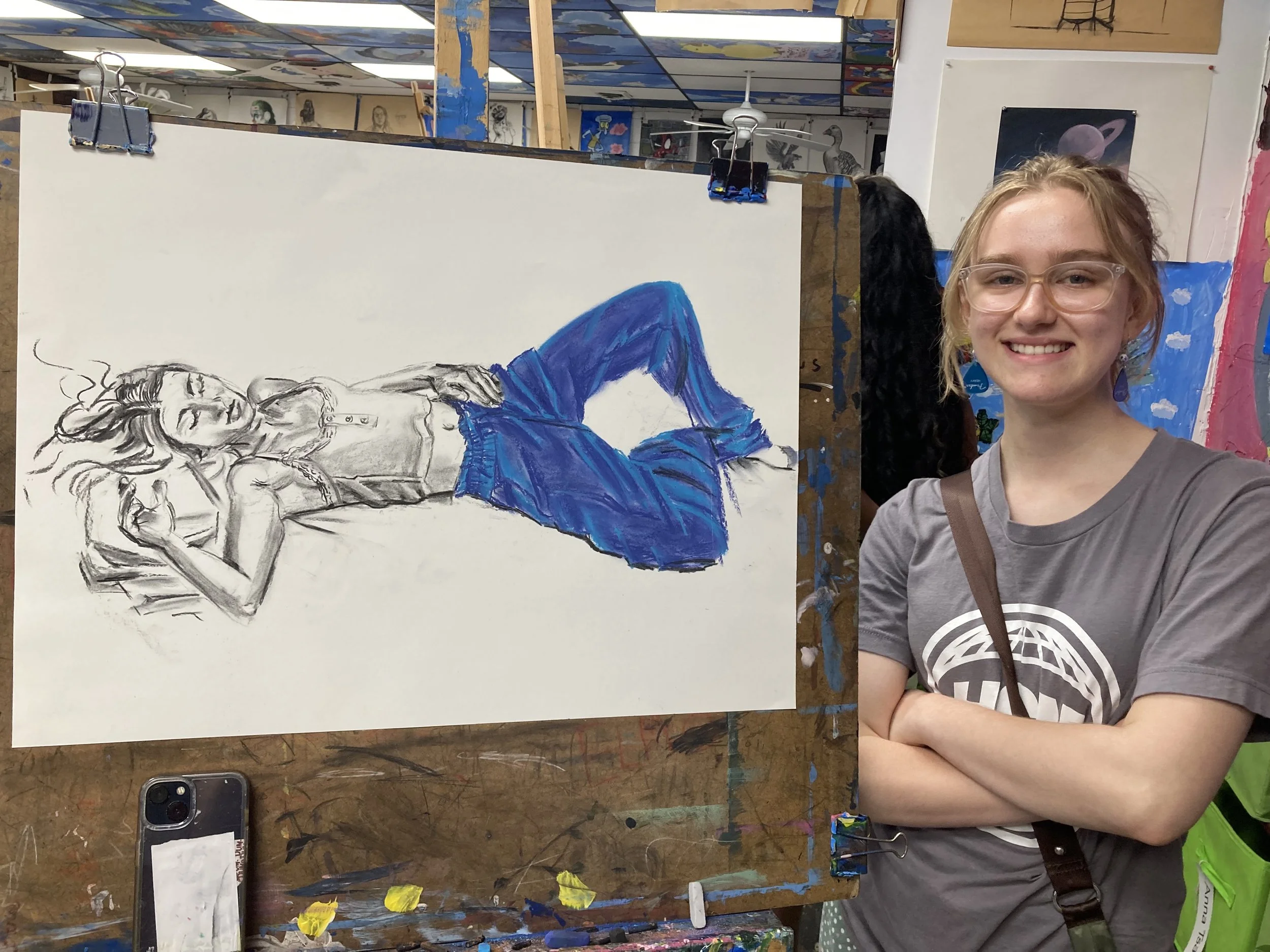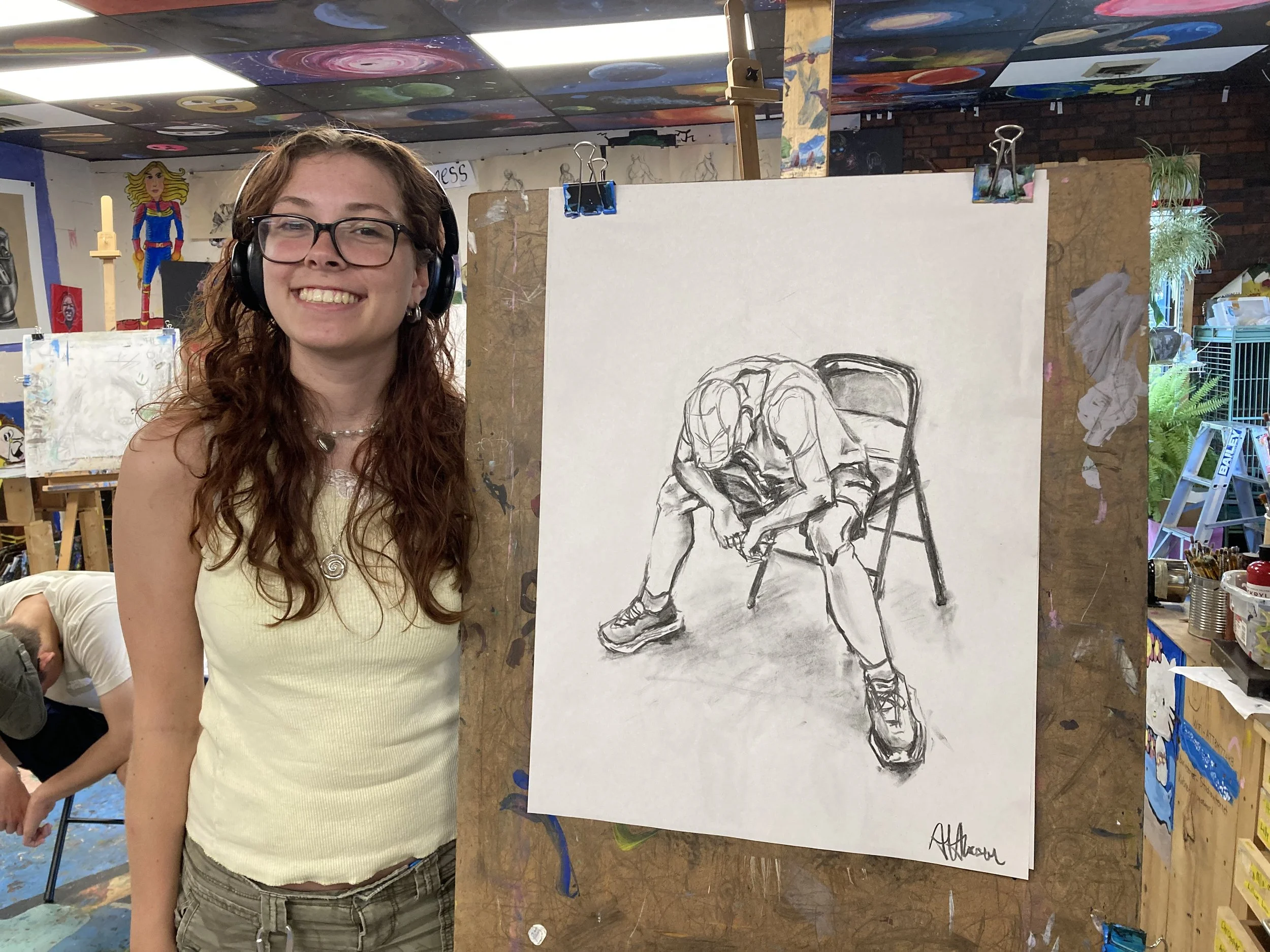 The annual program’s figure drawing class is designed to give committed students an opportunity to excel in their observational skills along with their ability to translate what is in front of them onto their easels, being the model. The model that I use is age-appropriate, so the students are able to feel relaxed and comfortable when having to draw or paint her. I like to change up the models so the students learn to deal with different body types. The models are fully clothed to remain age-appropriate, and the model generally knows most of the participants to make the students feel more comfortable. The students and model all converse with each other while drawing which is a lovely environment to develop growth in skills.