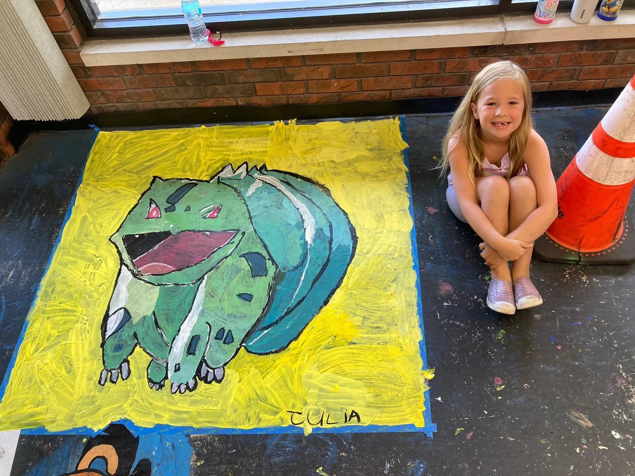 Hold on… An ‘invitation only’ summer program? What is that all about?! There must still be a way I can enroll or sign up, right? Not a chance! The graffiti camp is an exclusive program created to give my year-round students an opportunity to challenge themselves in a special and unique way. This camp was specifically created to give my year-round students an opportunity to be challenged in a larger way. The child needs to create something of their choosing on paper and not only show me that their ideas are good, but to demonstrate they are able to paint the image on the wall in a larger scale. It is a very challenging endeavor as they work outside under the sun working with thicker outdoor paints and tricky surfaces that can be either wood, a floor tile, brick or cinder blocks depending on where their skill sets are.