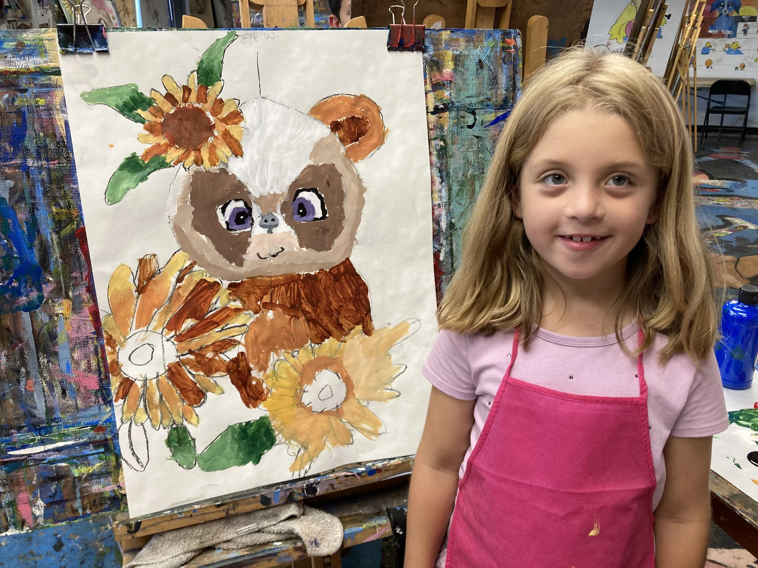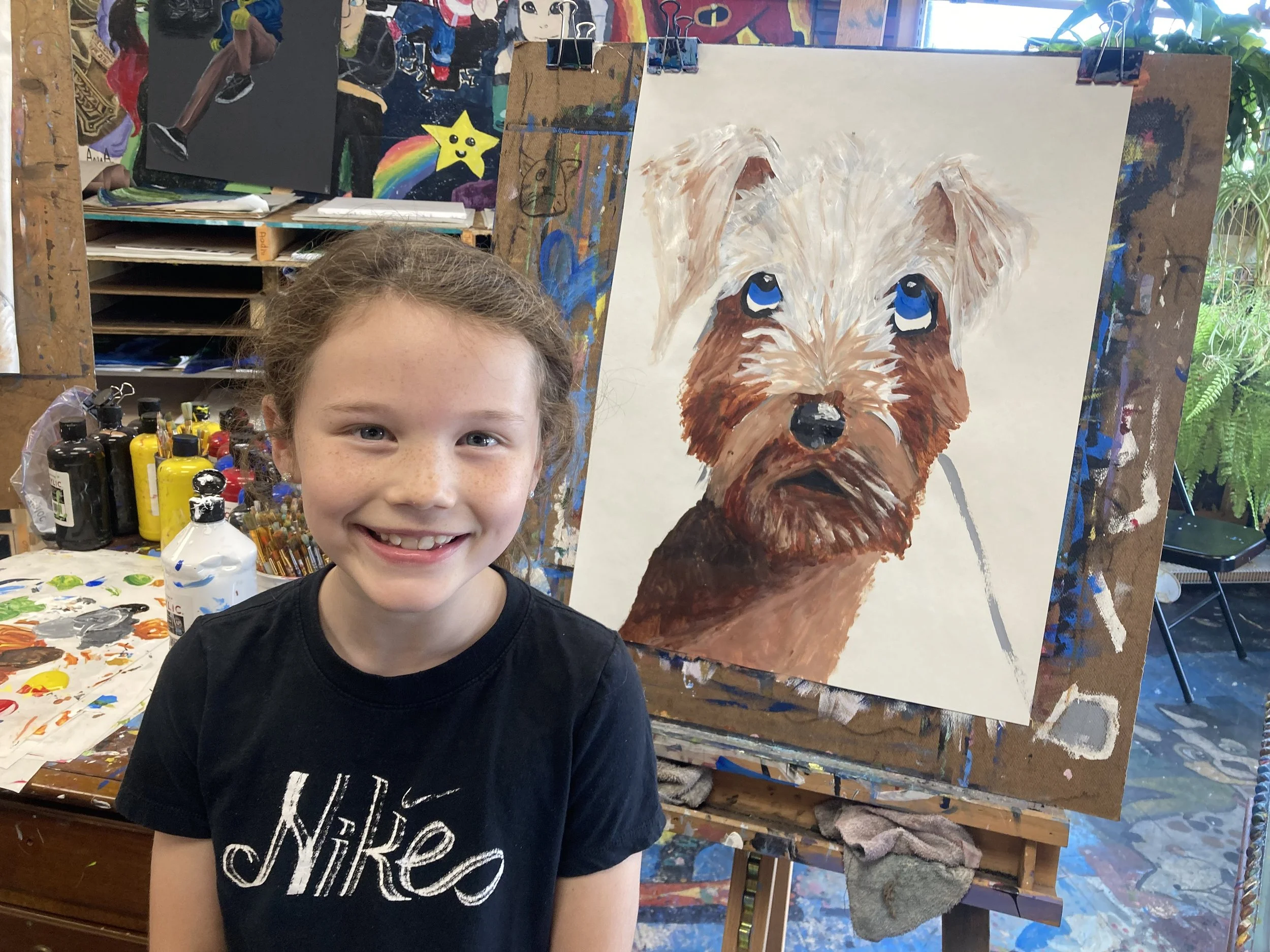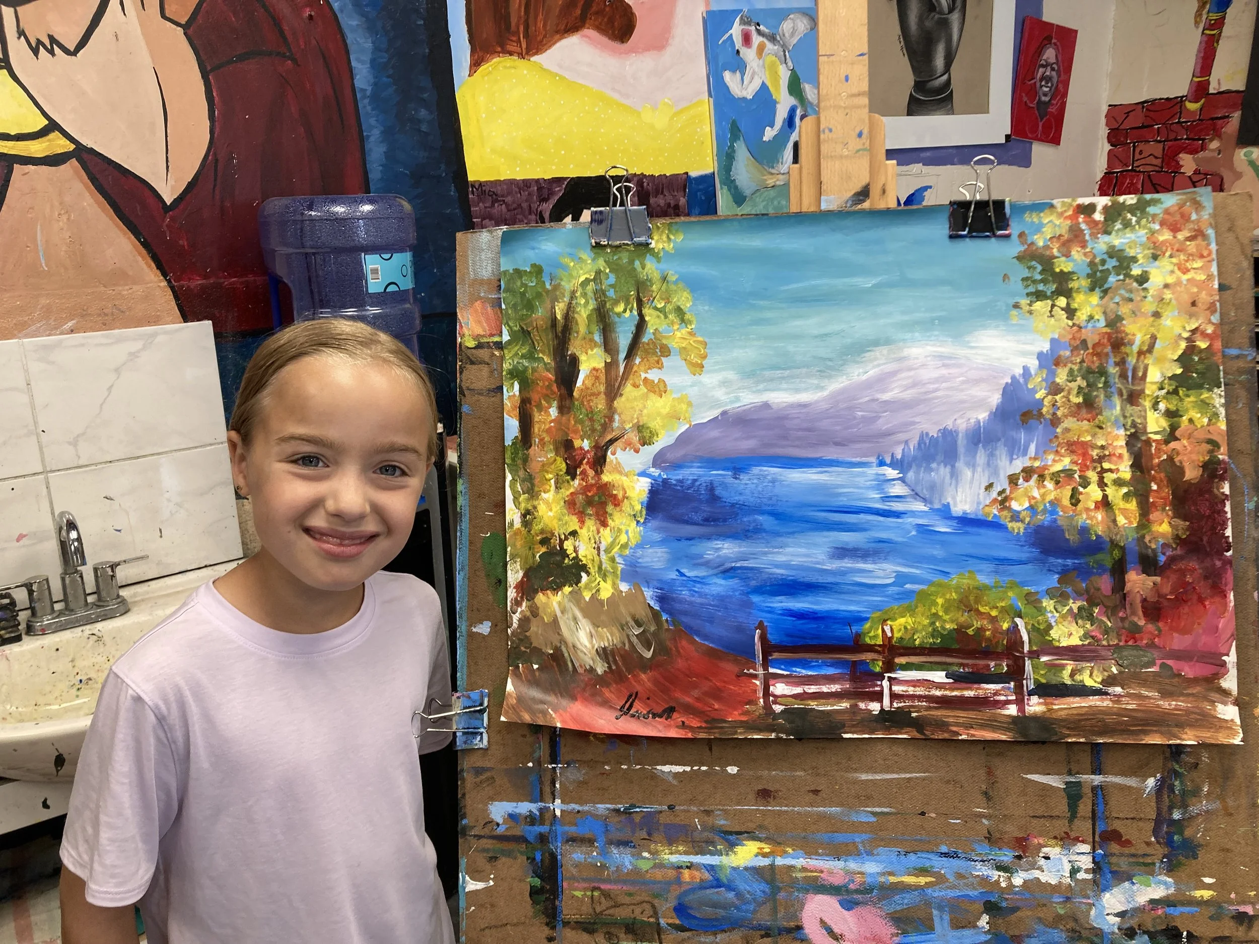The Summer Painting Camp program allows the child to explore and build their painting skills. We cover composition, color relationships, color mixing, brush stroke, direction of brush stroke, different brushes including flat and pointed, blending techniques, and adding texture as we build up the painting to finish it.